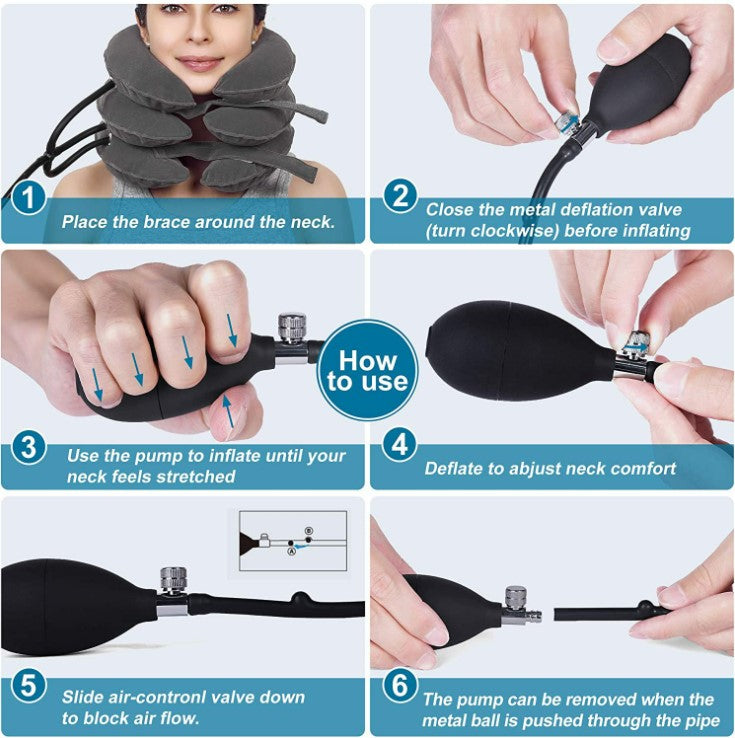 Cervical Traction Device Neck Support Inflatable Pillow - Blue