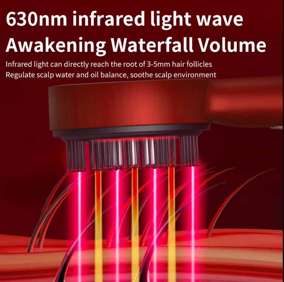 2.Equipped with 72 round teeth and 630nm wavelength red light, our massage comb can effectively knead and massage the scalp, deeply nourish the hair roots, and help you create lush and luxuriant hair.