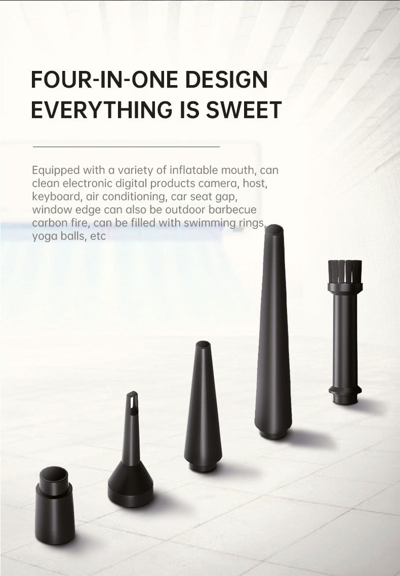 Application scope: hair blowing, computer keyboard and chassis, cars, home cleaning, offices, digital products, LEGO toys, swimming circle airbeds, outdoor barbecues, etc